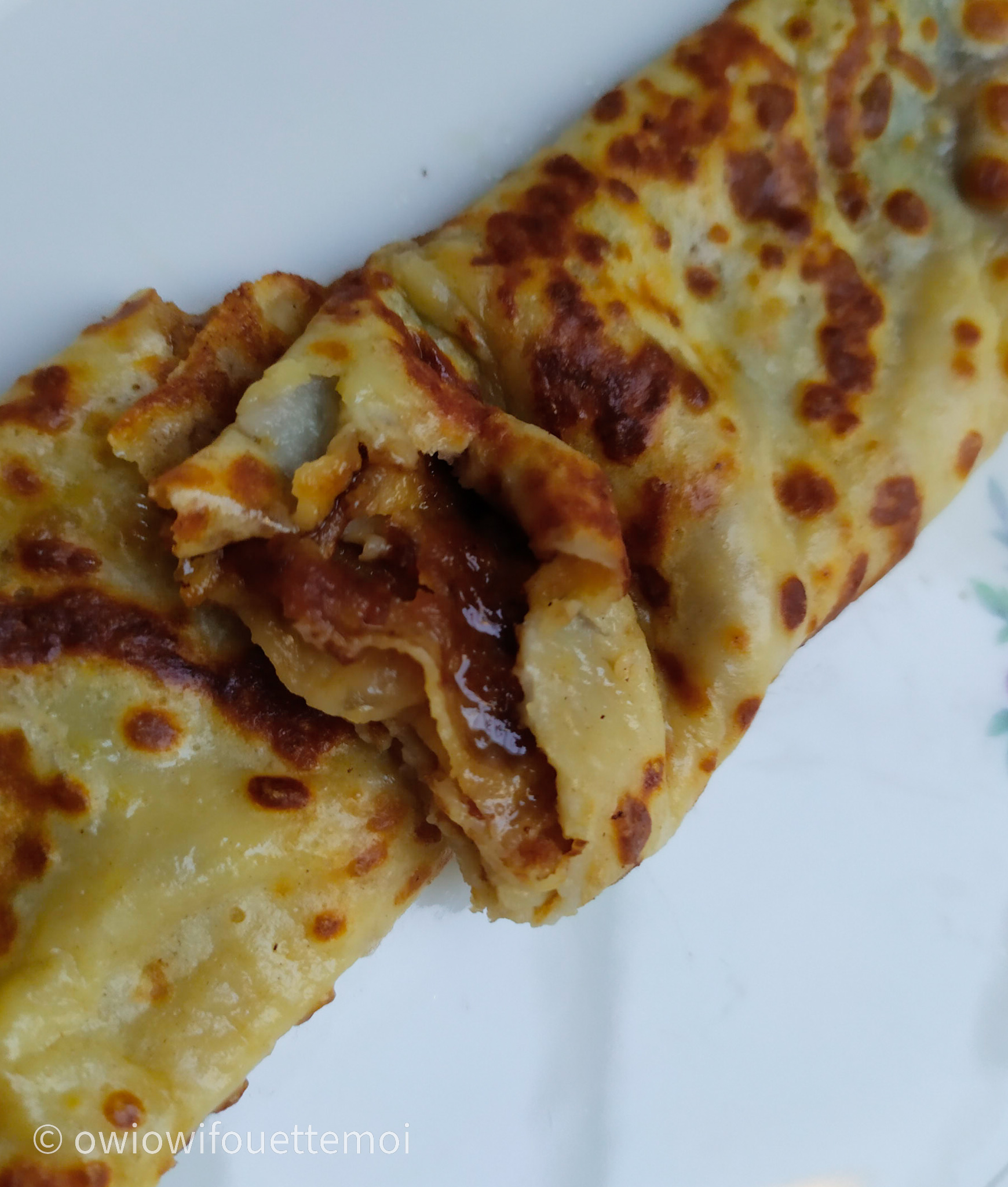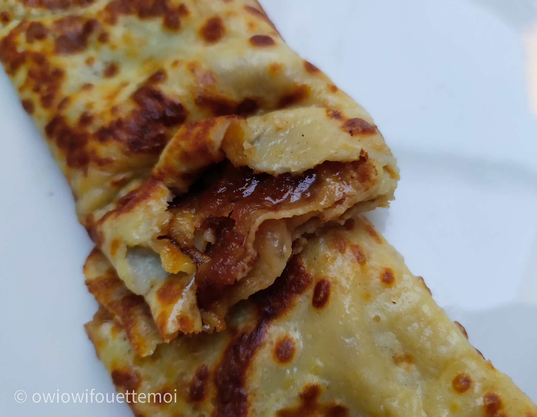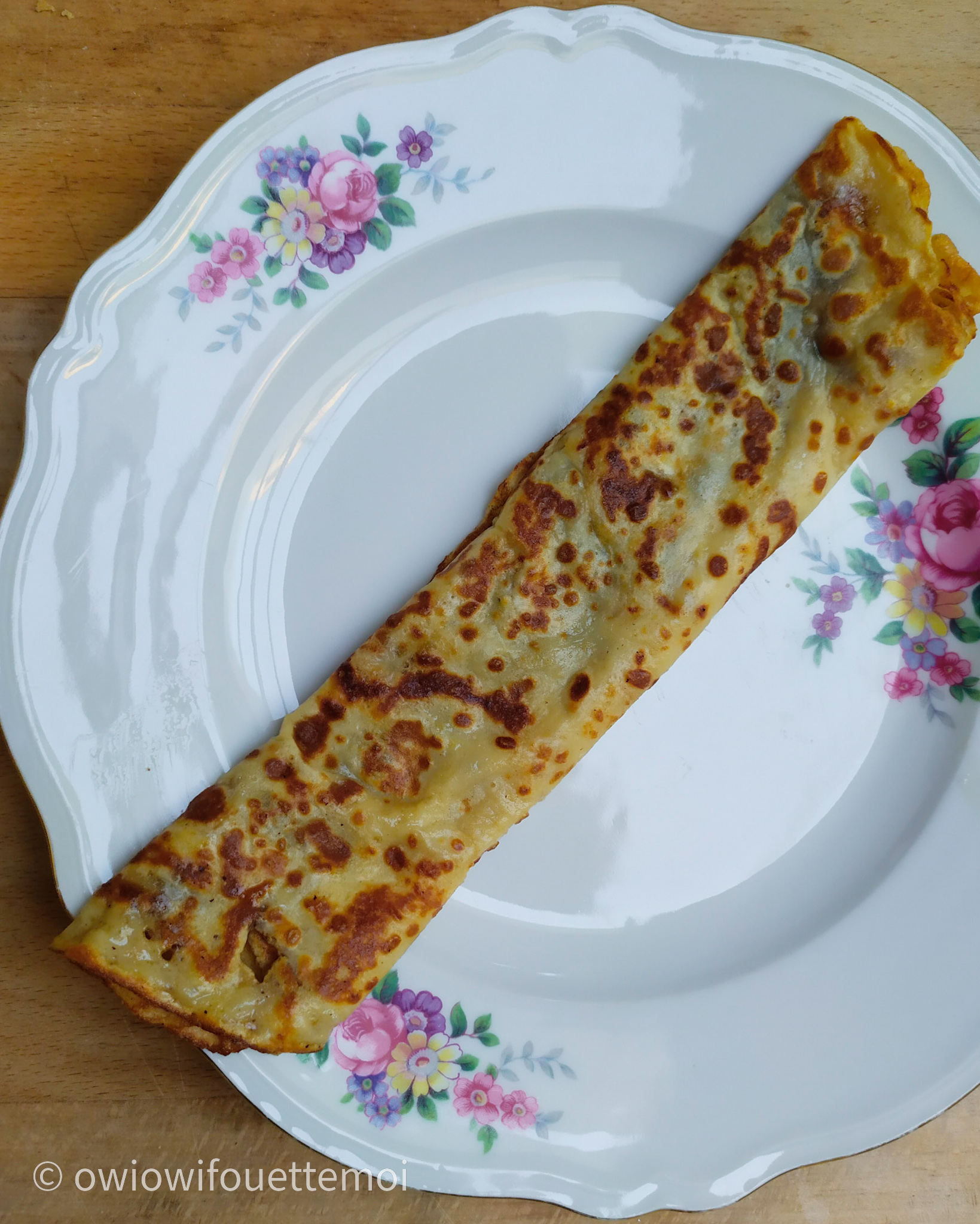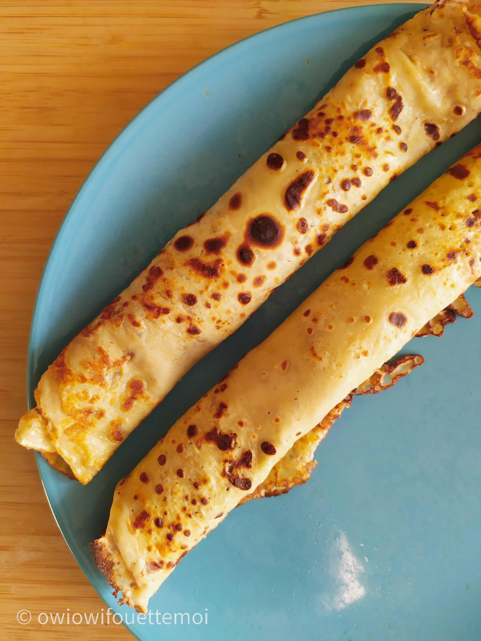 Owi owi des crêpes ! J’avais fort faim et fort confiance alors j’ai directement doublé les proportions et j’ai fait 7 jolies crêpes, c’était trop trop bon !