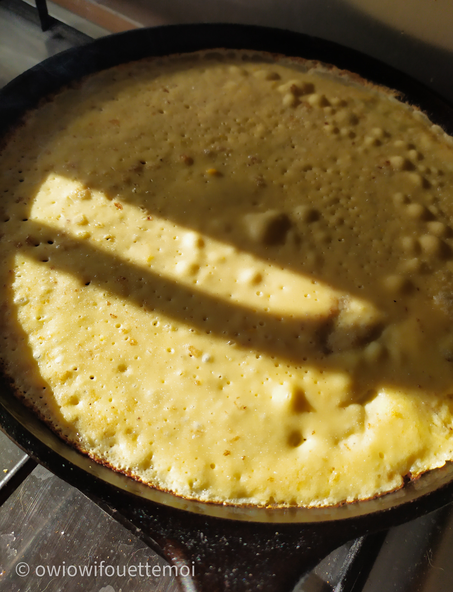 Matos : un fouet et une poêle à crêpes (peu importe comment tu l’appelles, on se calme les bretons)