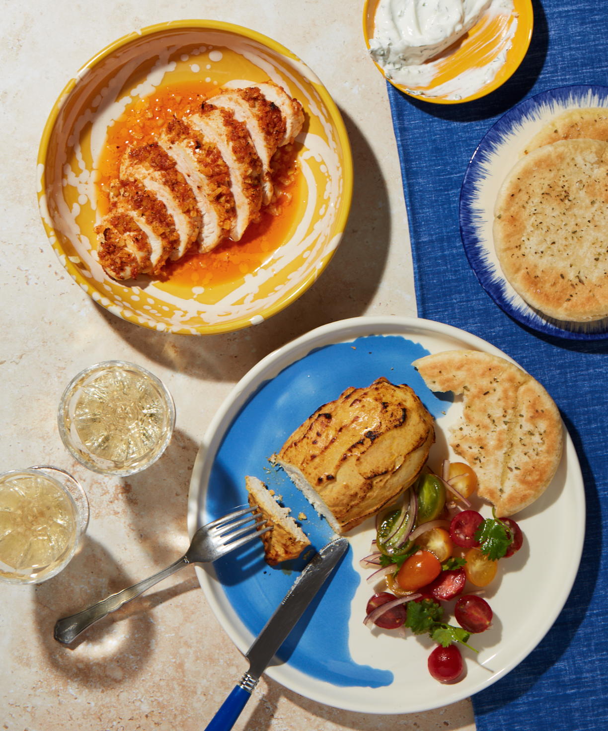 Il est magnifique !!! Et il y a des cakes salés, du halloumi, des patates et du poulet !!! Il est aussi parfaitement assorti au Gâteau dont tu es le héros 😏